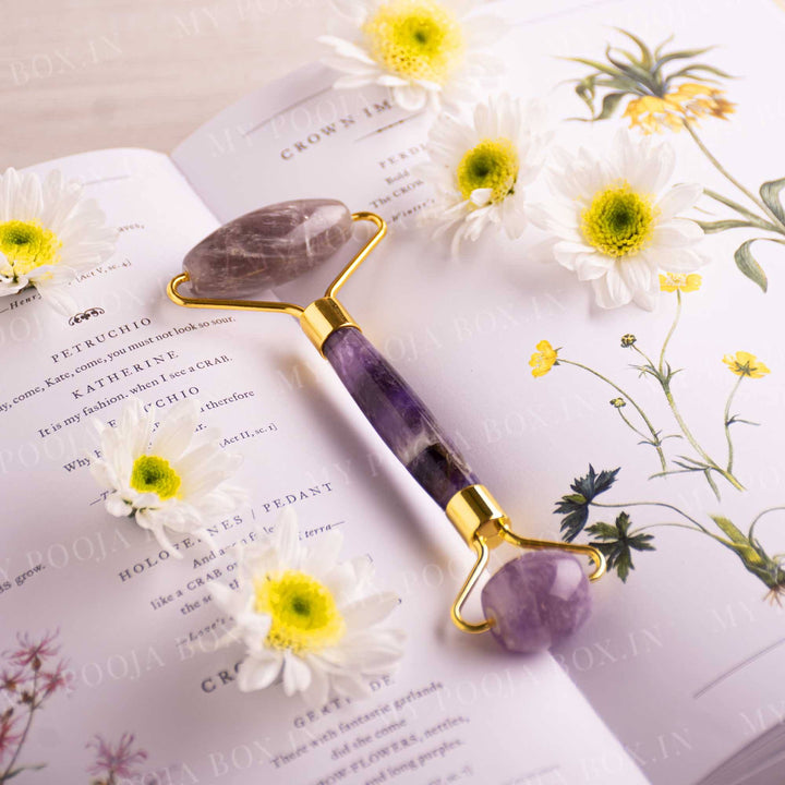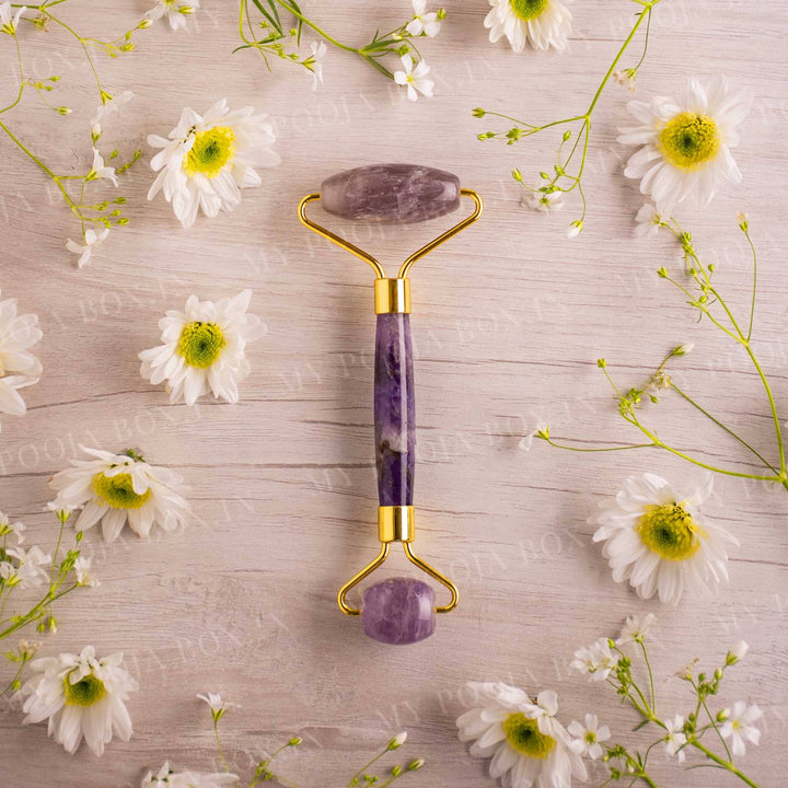 Gently roll away stress and tension with our Amethyst Crystal Facial Beauty Roller. The smooth, cooling amethyst crystal helps improve skin texture and promotes relaxation. Bring a touch of self-care to your daily routine with this natural beauty tool.