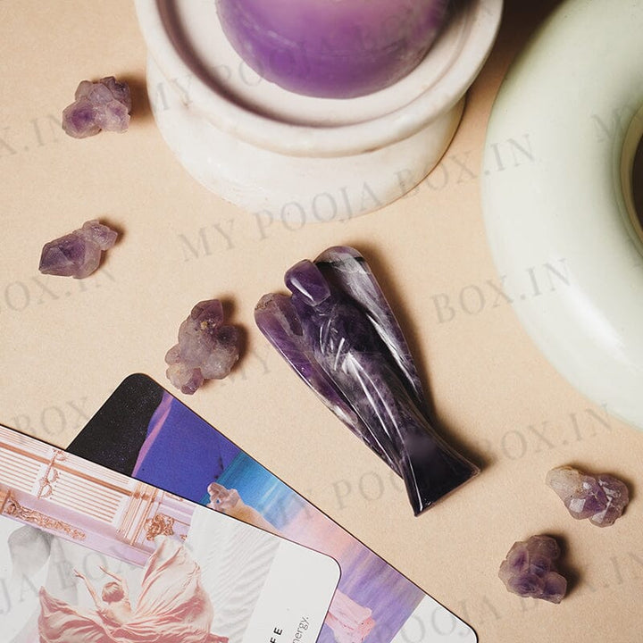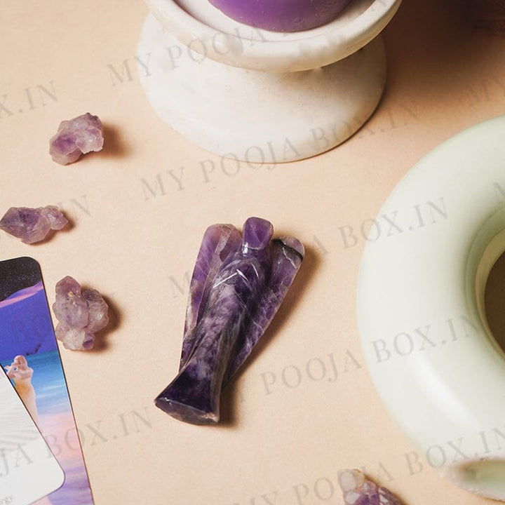 Guard yourself with the calming energy of our Amethyst Crystal Guardian Angel. This beautiful angel figurine is hand-carved from high-quality amethyst crystal, known for its ability to promote peace and harmony. Place it in your home or office for a constant reminder of inner strength and protection.