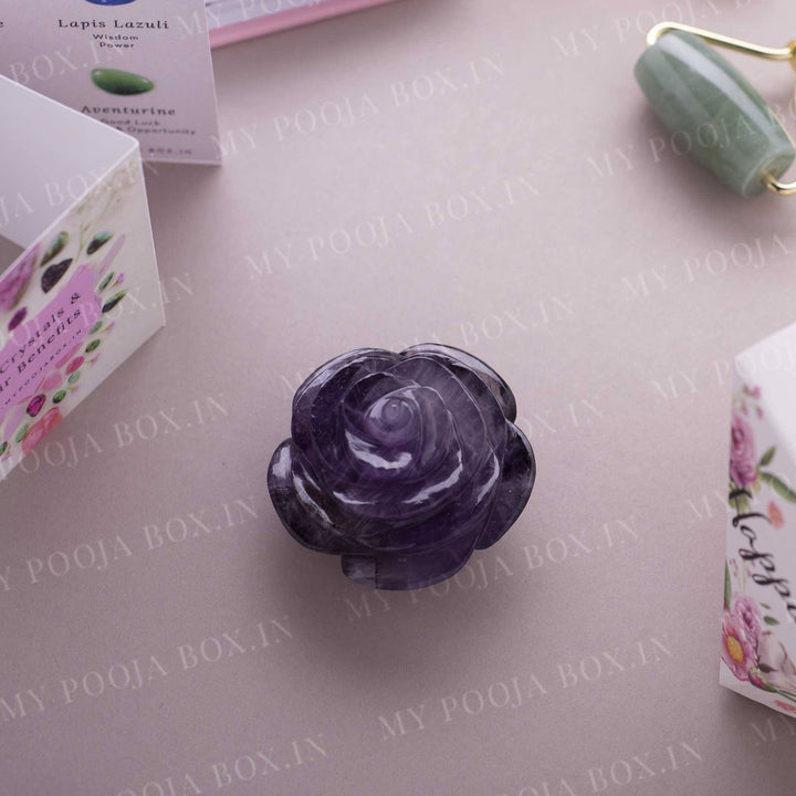 Add a touch of elegance to your home with our Amethyst Crystal Rose Showpiece. Beautifully handcrafted with genuine amethyst crystals, this piece is not only visually stunning but also said to bring calmness and balance to its surroundings. Perfect for a unique gift for a loved one or a special treat for yourself.