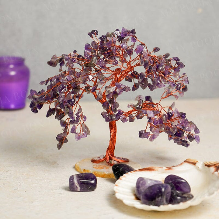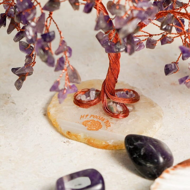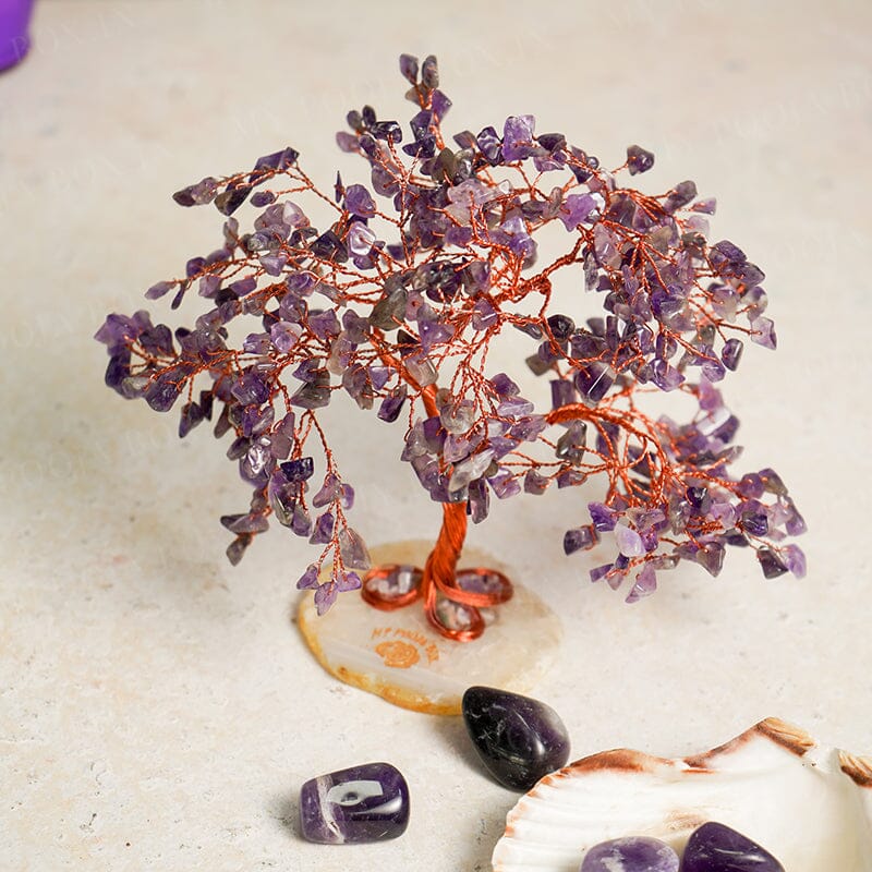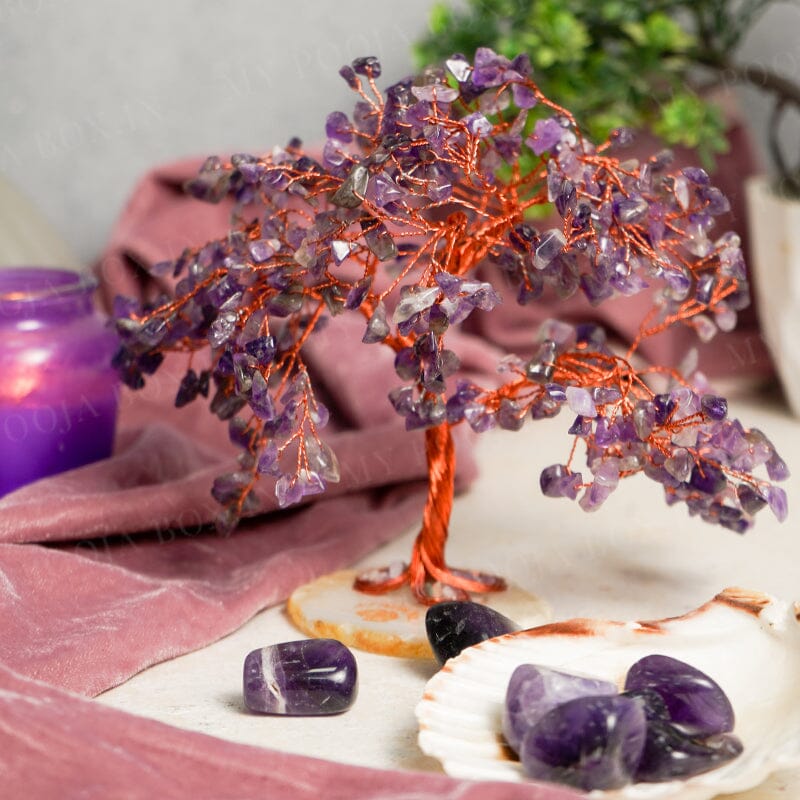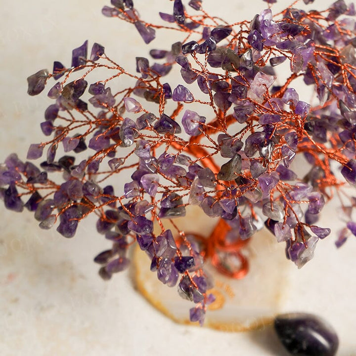 Boost your career with our Amethyst Crystal Feng Shui Tree. The amethyst crystals promote clarity and creativity, while the tree's branches symbolize growth and stability. Place this tree in your workspace for a positive and prosperous career.