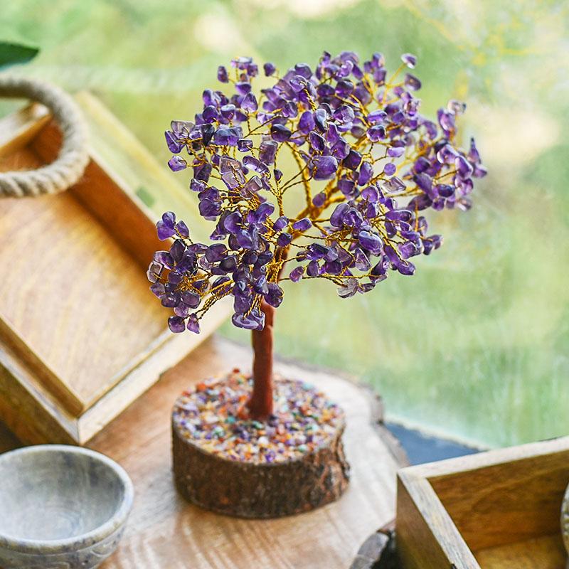 The Amethyst Gemstone Money Tree is more than just a beautiful decoration piece. Its natural amethyst gemstones are believed to bring abundance and prosperity, making it an ideal addition to any home or office. Let this tree help you manifest your financial goals and enhance the positive energy in your space.