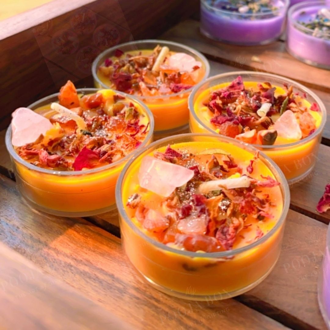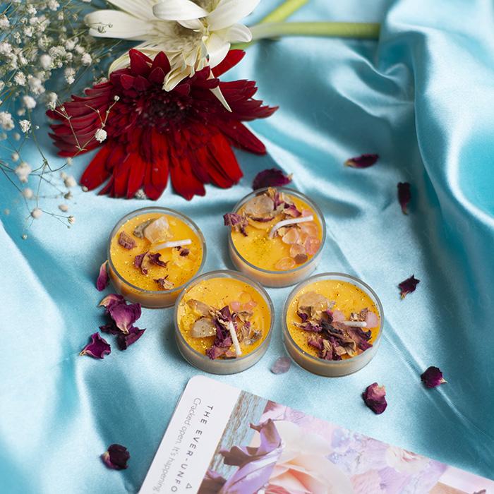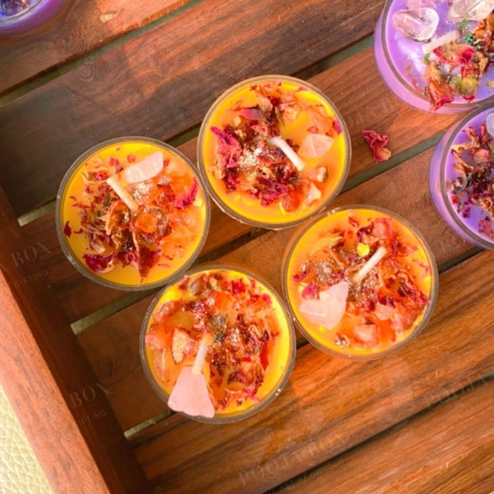 Citrine Rose Quartz Mogra Crystal Aromatherapy Candles (Set of 4)