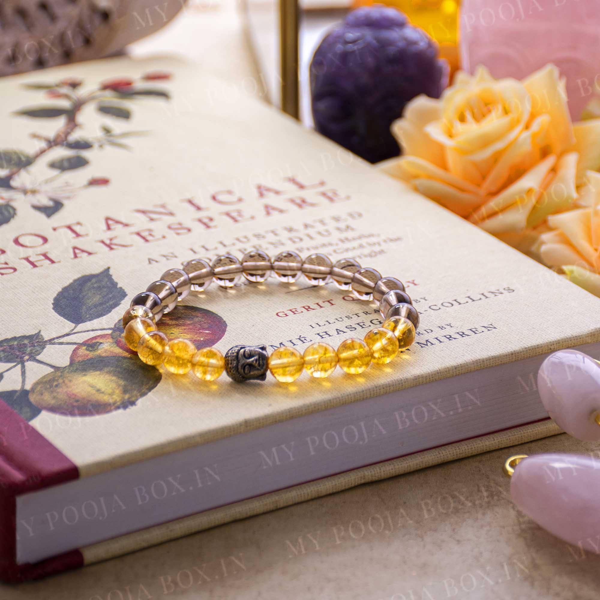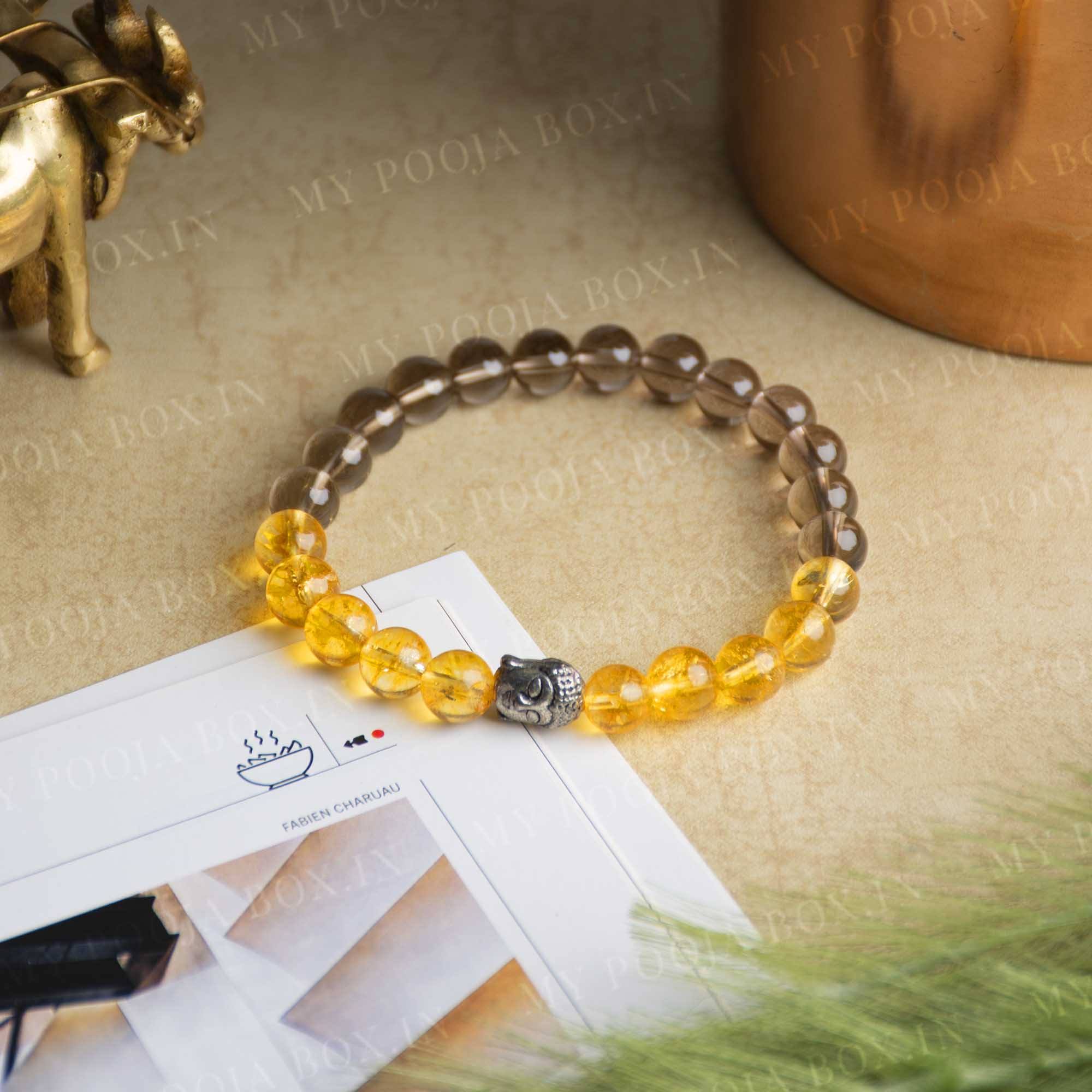 Citrine & Smokey Quartz Healing Bracelet with Buddha Charm