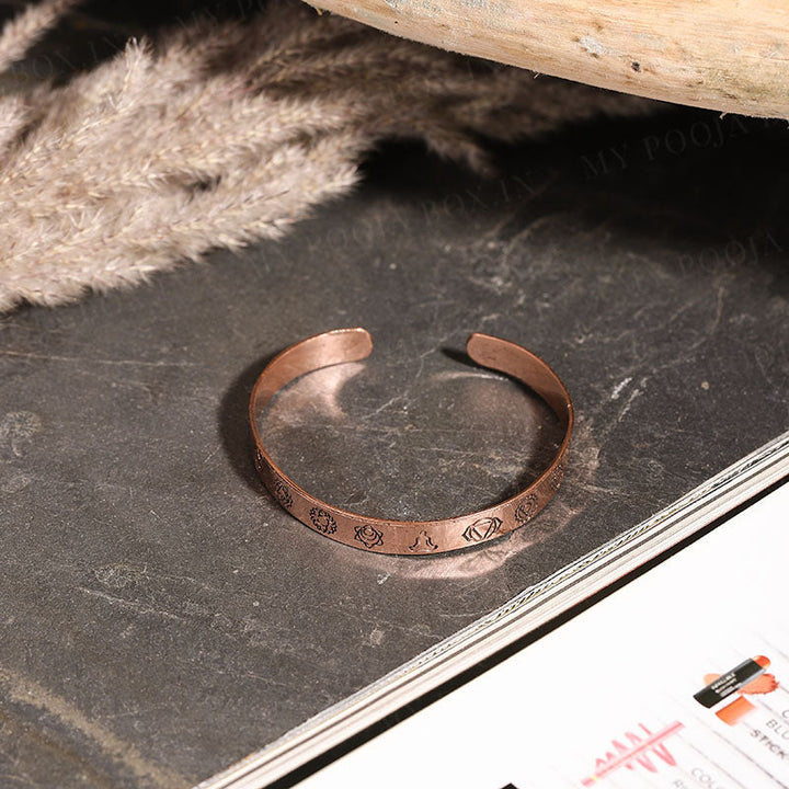 Unleash the calming power of meditation with our Copper Bracelet. Adorned with gorgeous symbols to aid in your practice, this bracelet is crafted from high-quality copper to provide a peaceful and balanced energy. Elevate your meditation routine and bring harmony to your day.