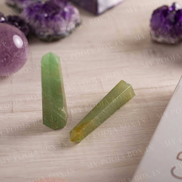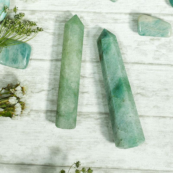 Enhance your well-being with our Green Jade Tower/Pencil set of 2. Made from Green Jade, a stone known for promoting health, wealth, and luck, these towers/pencils are perfect for any home or office. Display them or use them to draw in positive, prosperous energies.