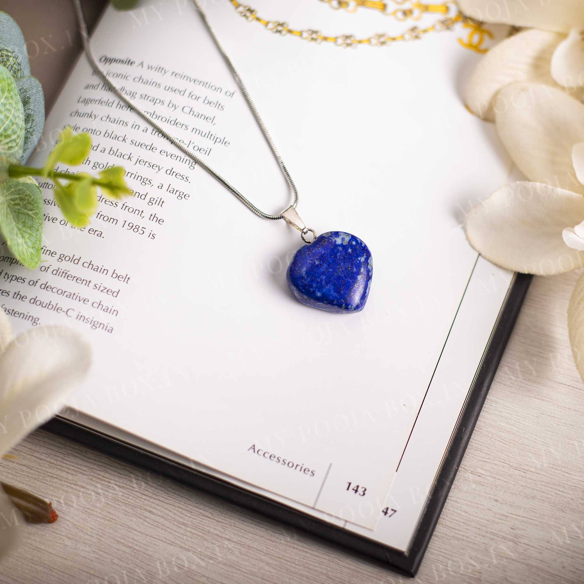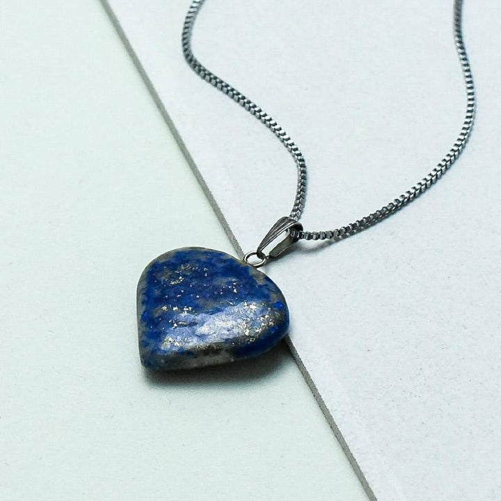This Lapis Lazuli Heart Pendant Necklace showcases the stunning deep blue of the Lapis Lazuli stone, revered for its calming and healing properties. The heart shape symbolizes love and compassion, making it a meaningful and stylish addition to any outfit.