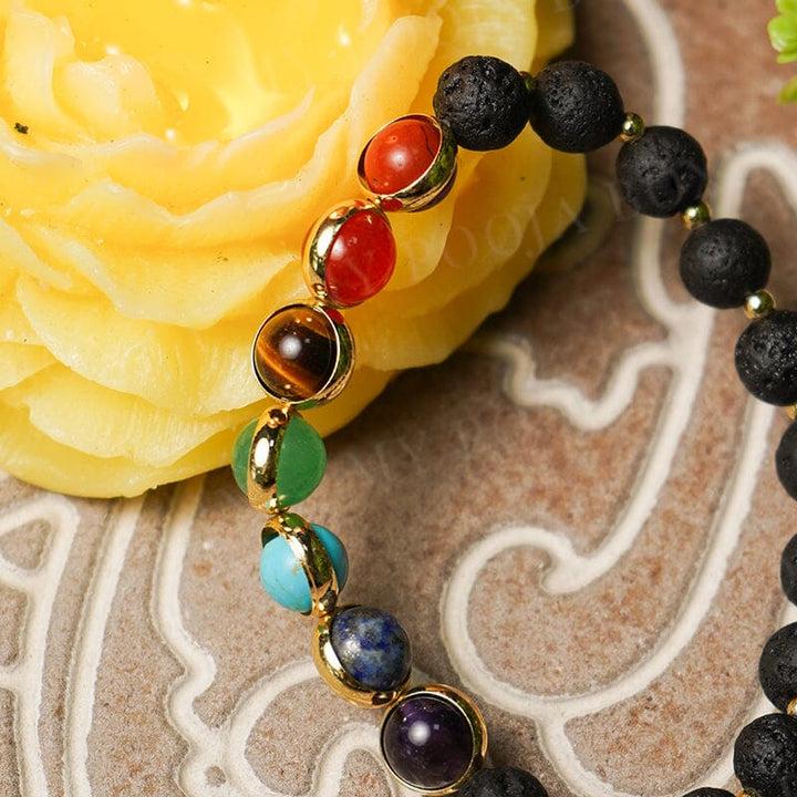 Experience the powerful energy of the Lava With Seven Chakra Brass Charms. Harness the healing properties of lava and the balancing powers of seven chakras, all in one beautiful piece. Elevate your style and wellbeing with this unique and versatile accessory.