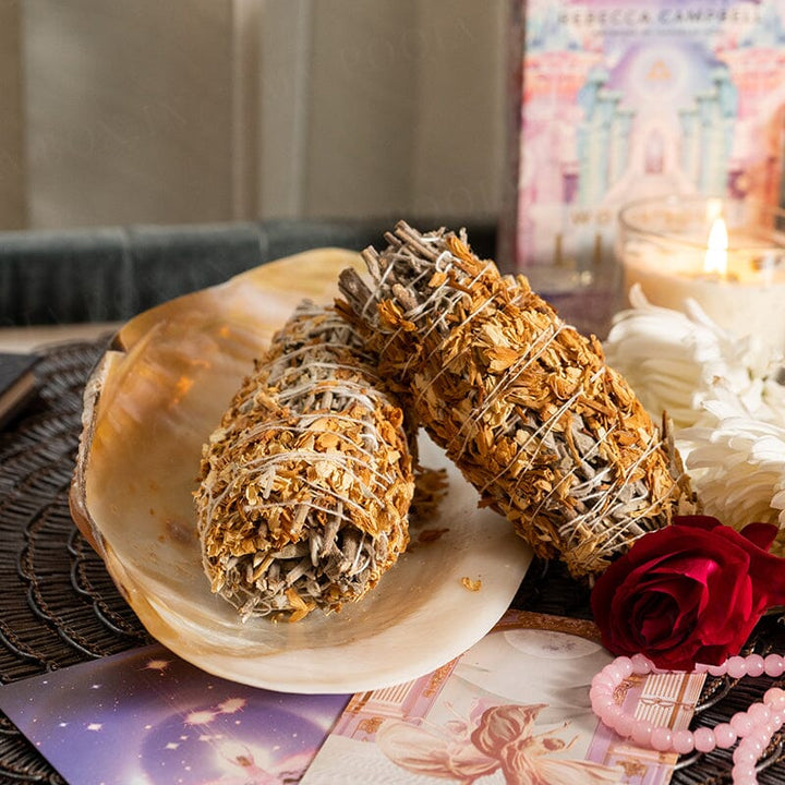 This Manifestation Jasmine Sage Smudge Wand is perfect for anyone seeking clarity and positive energy. Made with high-quality jasmine and sage, this wand can help you manifest your desires and cleanse your space. Embrace a sense of peace and positivity with each use.