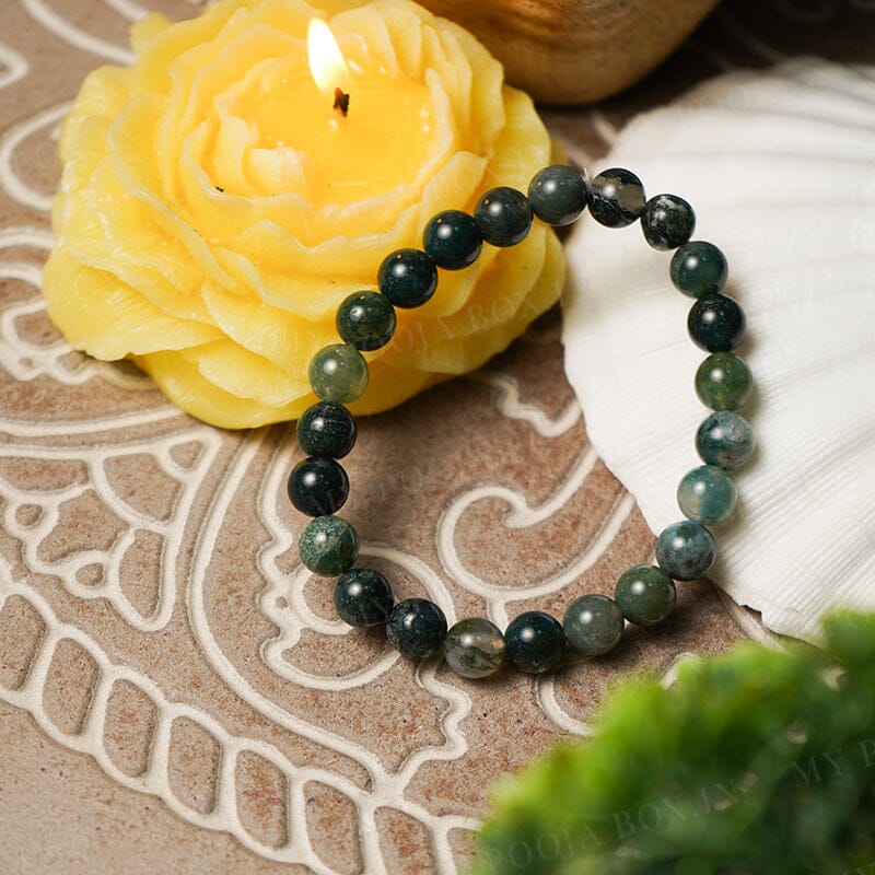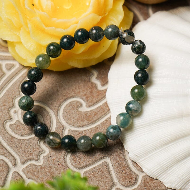 Experience the soothing energy of our Moss Agate Healing Crystal Bracelet. Made with genuine moss agate stones, this bracelet can help relieve stress and anxiety while promoting inner peace and balance. Perfect for anyone seeking emotional healing and grounding.