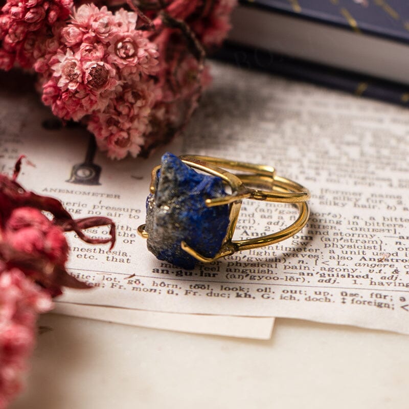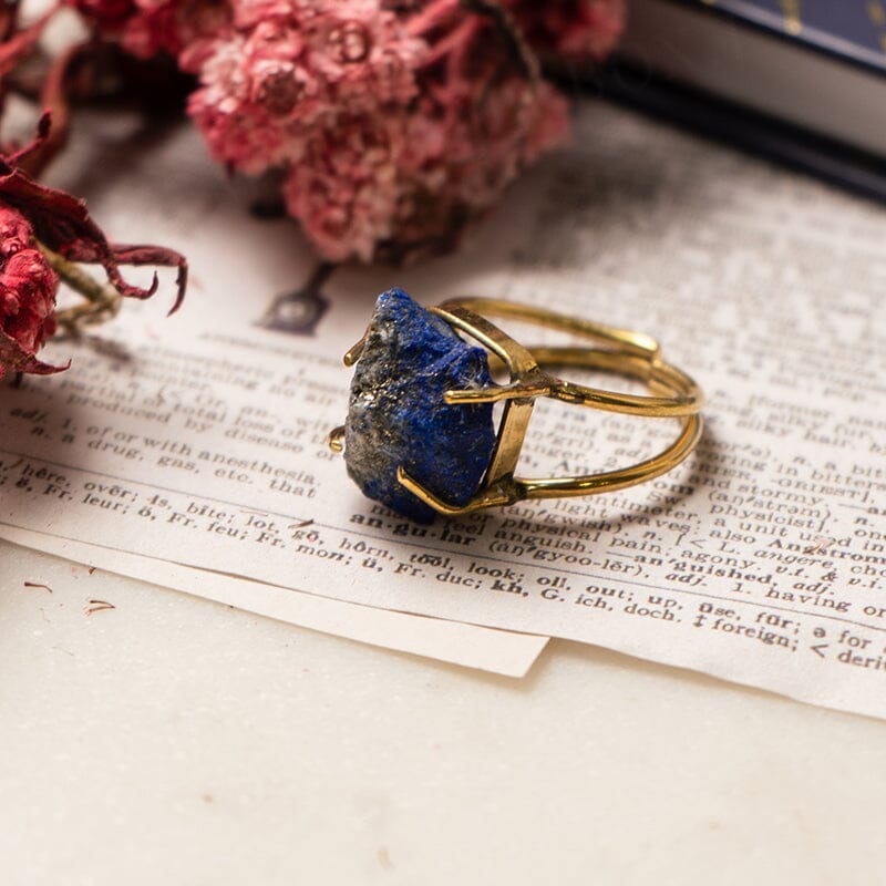 This stunning gold plated ring boasts a natural lapiz lazuli stone, known for its deep blue color and grounding properties. Perfect for everyday wear, this ring will not only elevate your style, but also bring balance and harmony to your life.