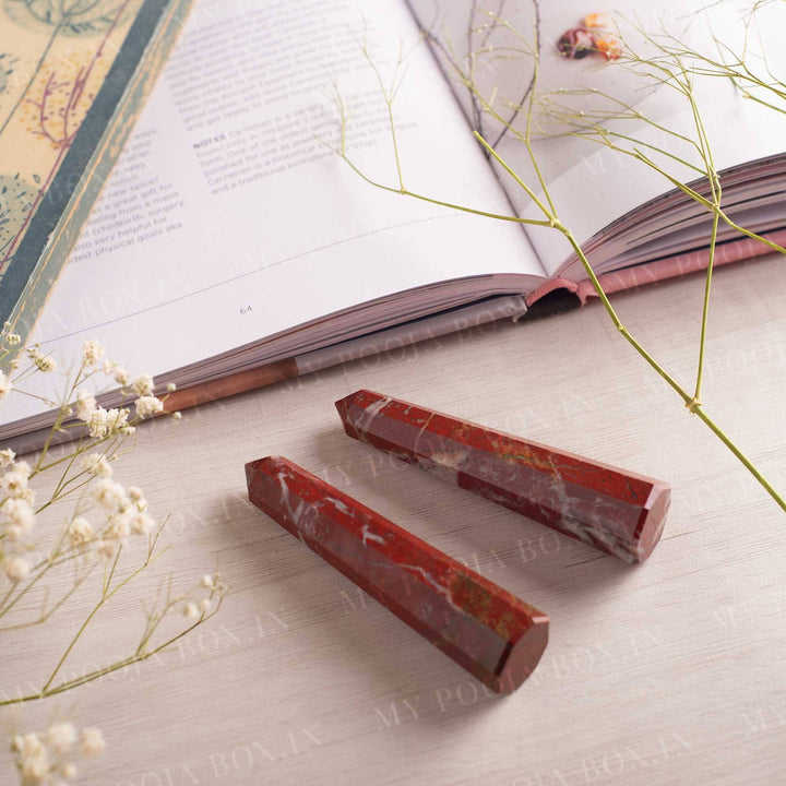 Red Jasper Crystal Healing Tower/Pencil (Set of 2) | Stability & Power