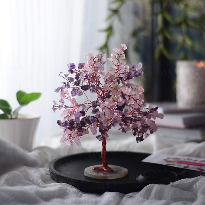 Rose Quartz & Amethyst Natural Healing Crystal Tree