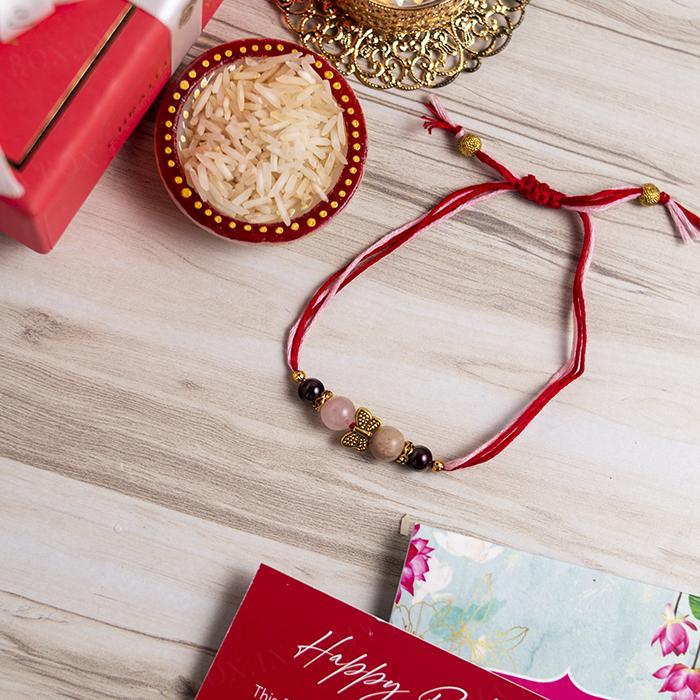 Love Rose Quartz Bhai Bhabhi Natural Crystal Rakhi