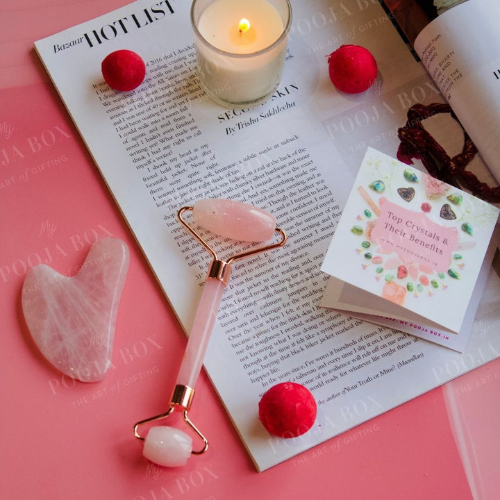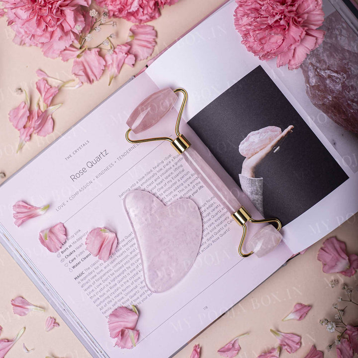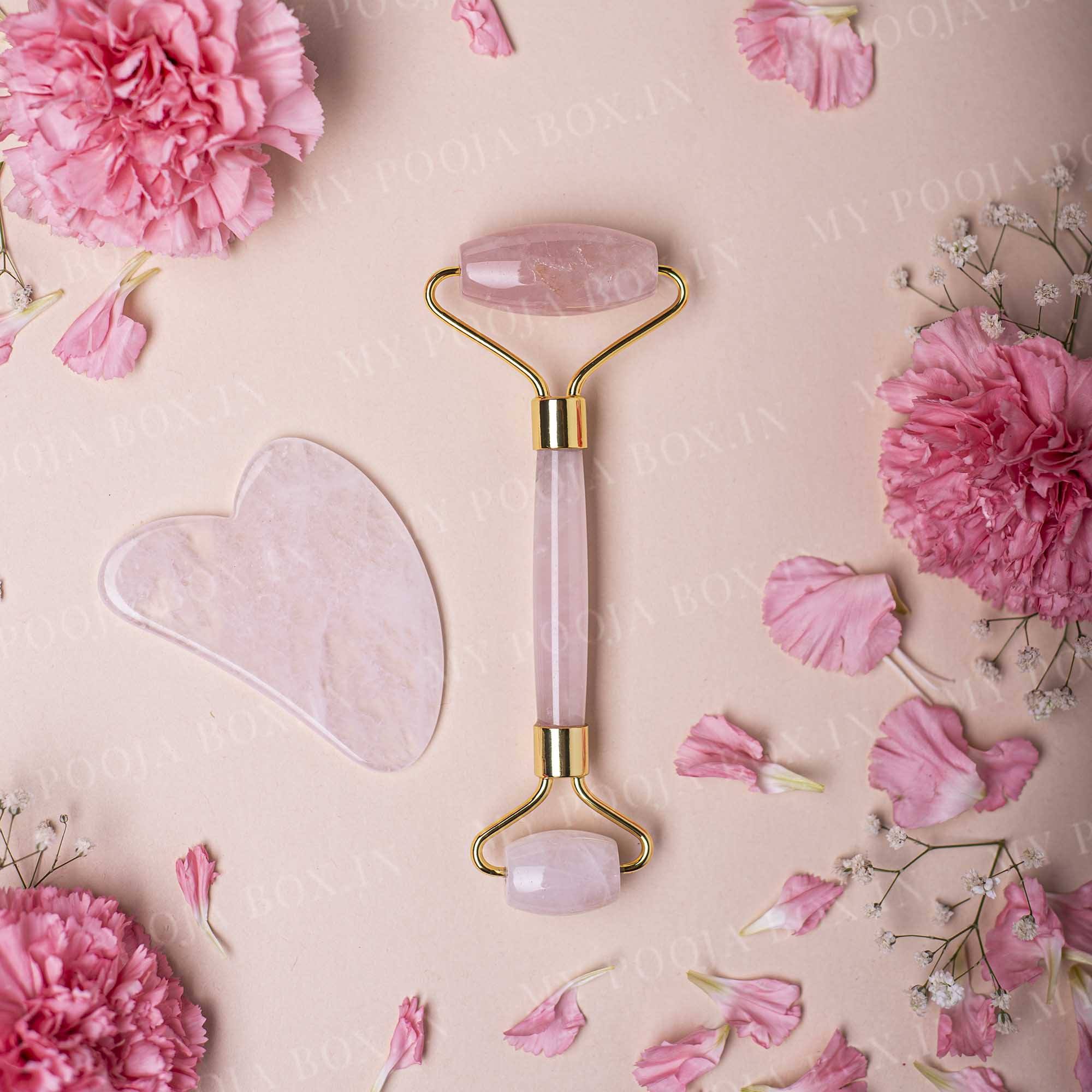 Improve your skincare routine with our Rose Quartz Roller and Gua Sha Facial Combo. These tools promote circulation and reduce inflammation for a healthy, glowing complexion. Treat yourself to a relaxing facial massage while increasing product absorption and reducing tension. A must-have for any beauty lover.