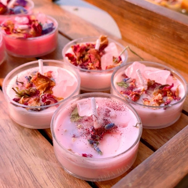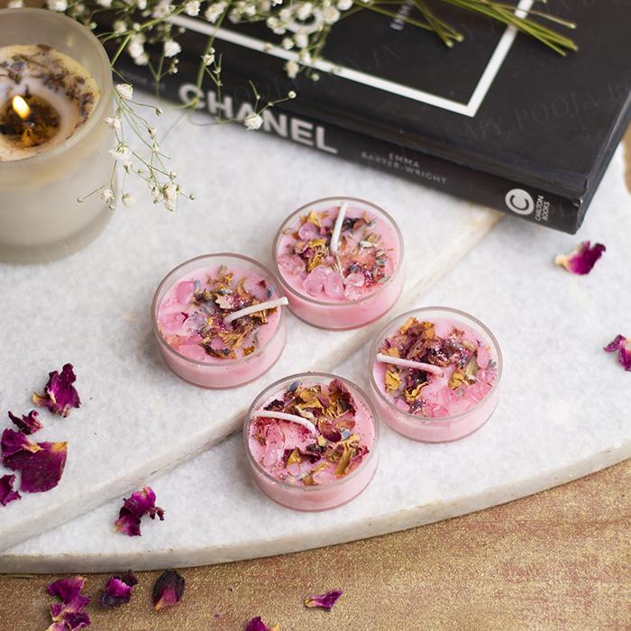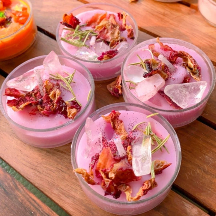 Rose Quartz Rose Crystal Aromatherapy Candles (Set of 4)