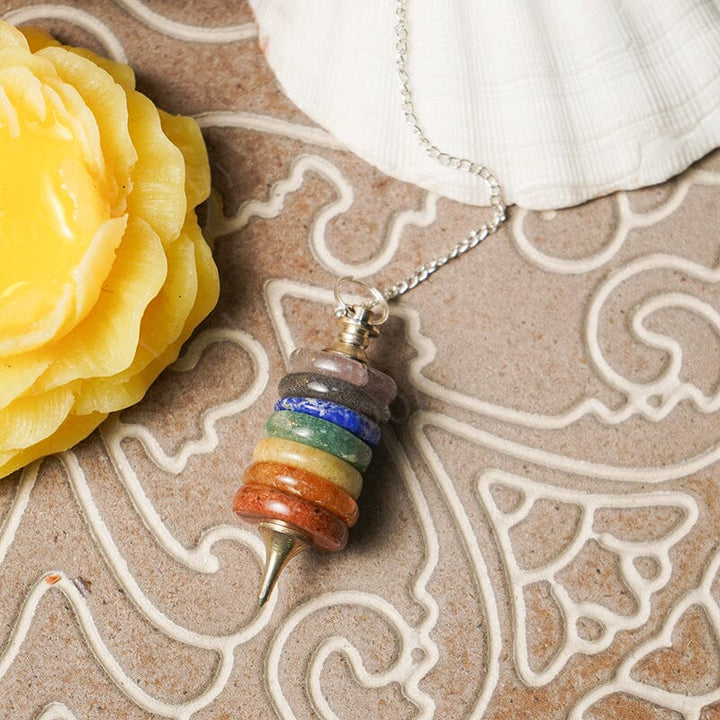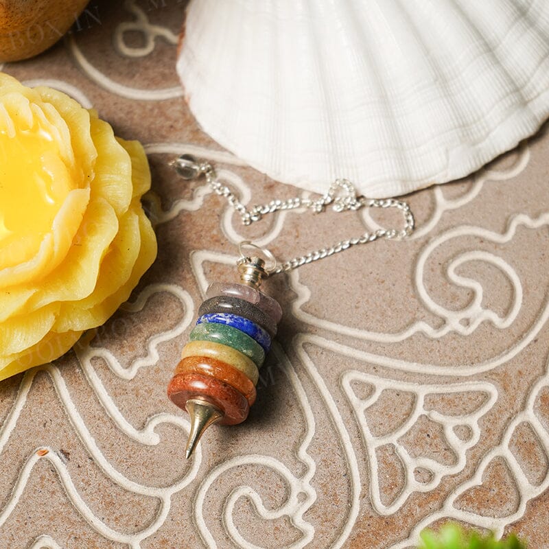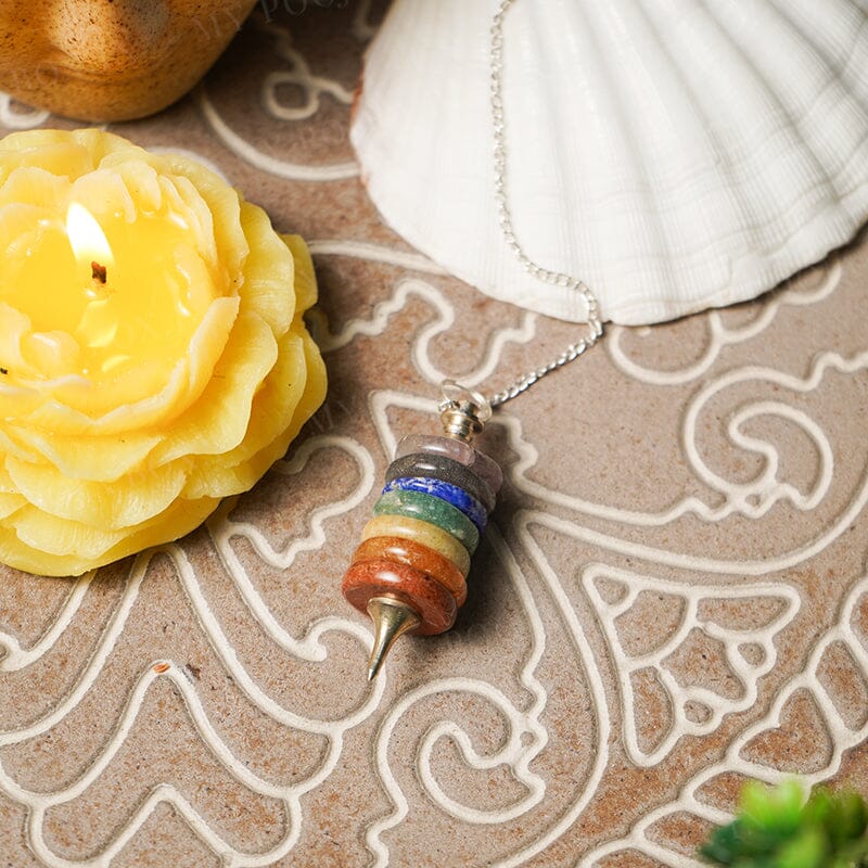 Balance your energy and find inner peace with our Seven Chakra Healing Pendulum. This beautiful pendulum features seven chakra stones, each representing a different energy center in the body. Use it to align your chakras and bring harmony to your mind, body, and spirit.