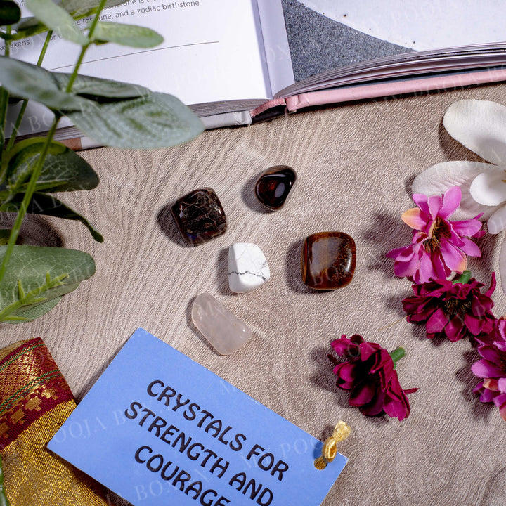 Discover the power of our Strength & Courage Crystal Healing Tumble Stone Set. Harness the natural energy of these hand-selected stones to boost your inner strength and courage. Find balance and confidence as you face life's challenges head on. Perfect for anyone seeking support and empowerment.