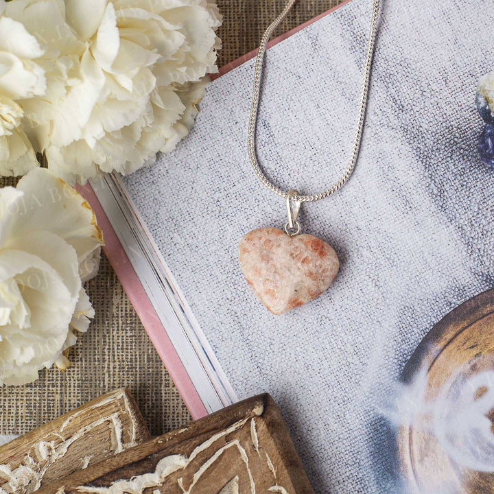 This Sunstone Heart Pendant Necklace is the perfect accessory for attracting good luck into your life. Made with genuine sunstone, this necklace features a heart-shaped pendant that symbolizes love and positivity. Add a touch of charm and good fortune to any outfit with this beautiful and meaningful piece.